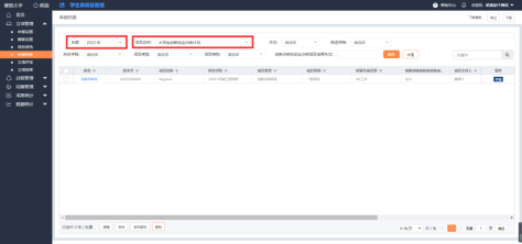 点击左侧菜单栏“立项管理”中的“申报列表”,然后选择好年度以及项目总称,即可显示出所负责学院的学生申报的项目。