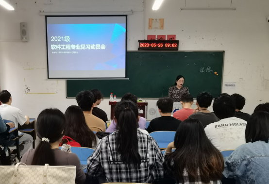 会议由软件工程教研室史杨老师主持。她对见习目的、见习内容与形式、见习前期准备、具体安排、见习要求及安全等事项进行了具体的说明。