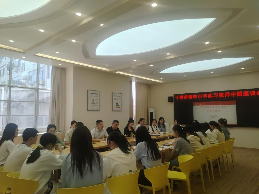 2025年5月7日下午,十堰市柳林小学教务处徐随海主任、叶丽丽副主任、数学教研组长陈金鸿、沙巴官网沙巴官网副院长王启东、数学学科教学论教研室主任王柏林、实习带队老师杨帆及董圆圆、杨凯然等师生,共同开展实习教师中期交流座谈会,全体实习生列席会议。
